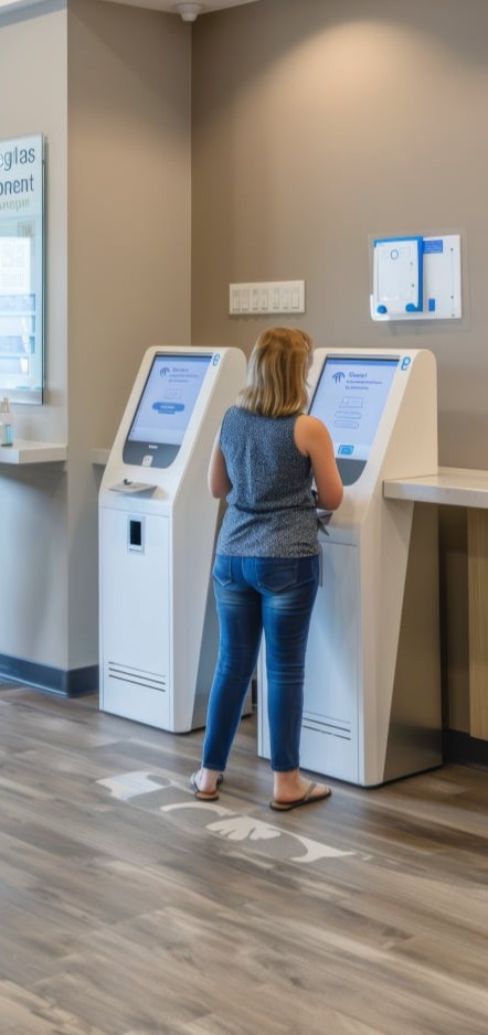 Permite que los clientes realicen sus gestiones directamente en el kiosko, reduciendo tiempos de espera.